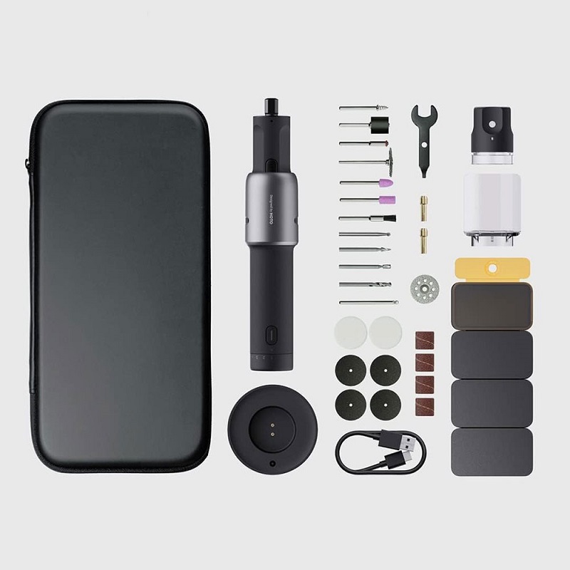 - اقلام همراه محصول کابل شارژ USB Type-C, 1 عدد آچار, 1 عدد ابزار چرخشی بی سیم, 1 عدد پایه شارژ, 1 عدد سر گیره, 1 عدد شیلد, 1 عدد کیسه ذخیره سازی EVA